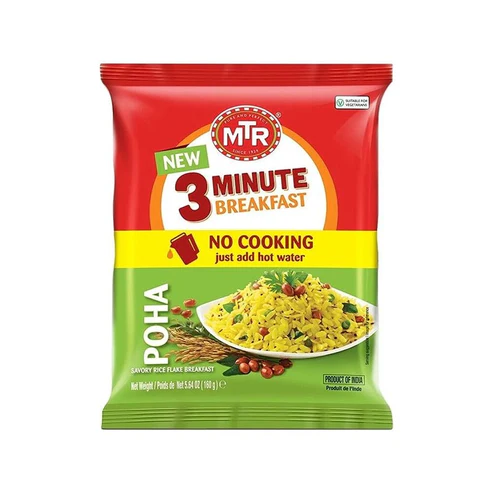 Ciesz się autentycznym smakiem Indii z MTR 3-Minute Breakfast Regular Poha – zdrową i aromatyczną potrawą z płaskiego ryżu. Idealne na zabiegane poranki, to gotowe do jedzenia danie łączy dobrodziejstwa płatków ryżowych z przyprawami, orzeszkami ziemnymi, cebulą i ziołami. Wystarczy dodać gorącą wodę, a Twoje pyszne śniadanie będzie gotowe w zaledwie 3 minuty!