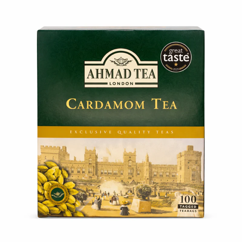 Ahmad Tea Cardamom Tea 220 g to aromatyczna czarna herbata  z dodatkiem kardamonu. Łączy intensywny, głęboki smak czarnej herbaty z delikatnie korzenną, lekko słodką nutą przyprawy. Tworzy wyrazisty, rozgrzewający napar, który doskonale smakuje zarówno solo, jak i z mlekiem lub miodem.