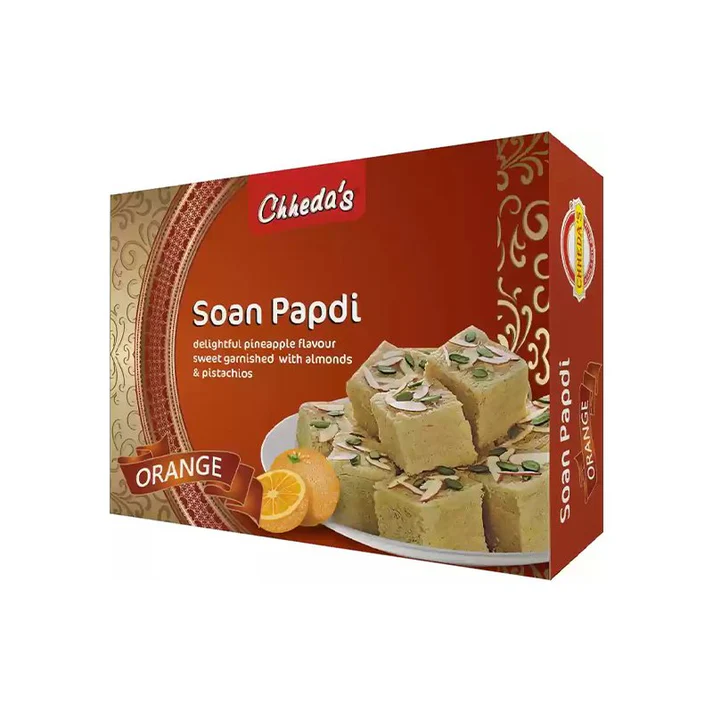 Chheda’s Soan Papdi Orange 240 g – Krucha indyjska słodycz z cytrusową nutą pomarańczy