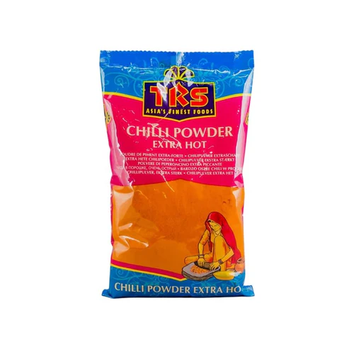 TRS Red Chilli Powder Extra Hot to wysokiej jakości przyprawa otrzymywana w 100% z mielonych czerwonych papryczek chili. Nadaje potrawom ognisty charakter, intensywny smak i piękny, głęboki kolor.