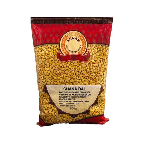 Channa dal to połówki ciecierzycy bez skórki, powszechnie używane w kuchni indyjskiej. Charakteryzuje się delikatnym, lekko orzechowym smakiem i zwartą konsystencją po ugotowaniu. Jest doskonałym składnikiem dań takich jak dal, curry, zupy, a także słonych przekąsek.