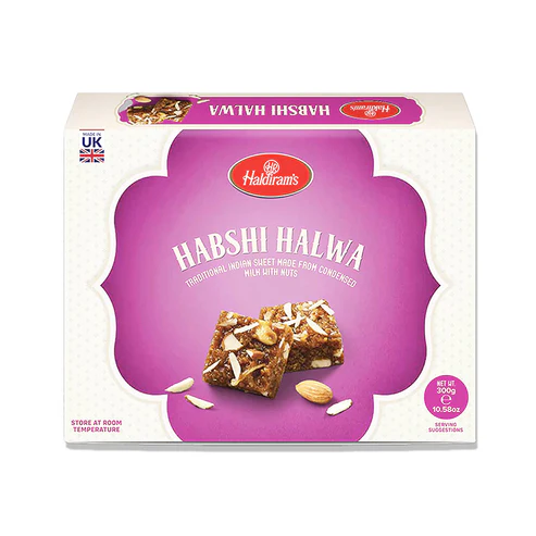 Haldiram’s Habshi Halwa to tradycyjny indyjski deser, który oferuje bogaty, słodki i aromatyczny smak. Jest przygotowywany z wysokiej jakości składników, w tym mleka, mąki pszennej, ghee (klarowanego masła), cukru oraz przypraw, takich jak kardamon. Jego tekstura jest wyjątkowa: miękka, lekko ciągnąca się, z subtelną gruboziarnistą strukturą, co sprawia, że jest przyjemna w jedzeniu. Często wzbogacany jest o orzechy, takie jak migdały, nerkowce i pistacje, które dodają chrupkości oraz dodatkowego smaku.