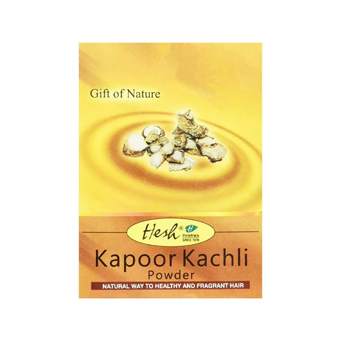 Hesh Kapoor Kachli Powder to naturalny, ziołowy proszek pozyskiwany z wysuszonych korzeni rośliny Kapoor Kachli, który jest stosowany w tradycyjnej medycynie ajurwedyjskiej, głównie w pielęgnacji włosów. Jest bogaty w przeciwutleniacze, witaminy i minerały, które wspomagają zdrowie włosów i skóry głowy.