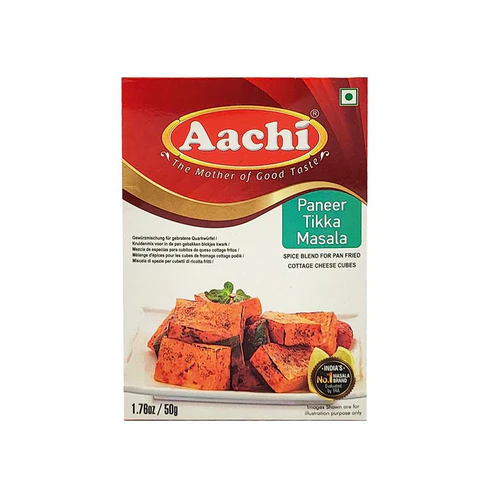 Aachi Paneer Tikka Masala 50g to mieszanka przypraw premium stworzona, aby pomóc Ci przygotować klasyczne indyjskie danie, Paneer Tikka Masala, z łatwością i autentycznością. Ta aromatyczna mieszanka łączy różne przyprawy, aby nadać bogaty i aromatyczny smak Twoim daniom z paneer.