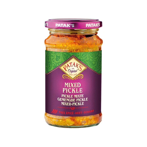 Patak’s Mixed Pickle to połączenie różnych warzyw i owoców marynowanych w tradycyjnych, pikantnych przyprawach. Doskonały dodatek do dań curry, ryżu czy przekąsek, który wnosi różnorodność smaków i aromatów prosto z Indii.