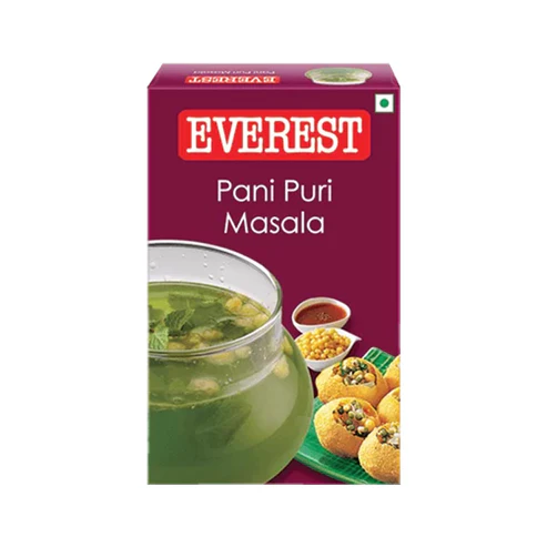 Everest Pani Puri Masala to gotowa mieszanka przypraw używana w kuchni indyjskiej, aby dodać smaku i aromatu popularnemu daniu ulicznemu o nazwie Pani Puri. Pani Puri to chrupiąca, pusta muszla wypełniona pikantnymi ziemniakami i ciecierzycą, podawana z pikantną wodą z tamaryndowca. Mieszanka przypraw jest dodawana do pikantnej wody używanej do napełniania Pani Puri, aby wzmocnić smak i uczynić ją bardziej aromatyczną. Everest Pani Puri Masala jest znana ze swojego autentycznego smaku i łatwości użycia w przygotowywaniu Pani Puri w domu. Może być również używana w wielu innych daniach ulicznych, takich jak chaat czy dahi puri.