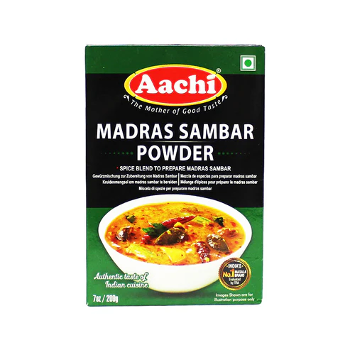 Aachi Madras Sambar Powder to profesjonalna mieszanka przypraw, która ułatwia przygotowanie Sambar – popularnego południowoindyjskiego gulaszu warzywnego na bazie soczewicy. Dzięki starannie dobranym przyprawom, takim jak kolendra, kmin, czerwone papryczki chili, kozieradka i asafetyd, ta mieszanka zapewnia autentyczny, wyrazisty smak południowoindyjskiej kuchni.