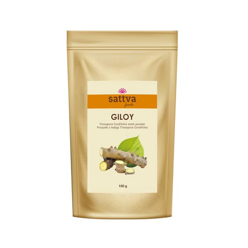 Sattva Giloy Powder to naturalny suplement diety wytwarzany z łodygi rośliny Tinospora cordifolia, znanej również jako Giloy lub Guduchi. Roślina ta od wieków jest stosowana w medycynie ajurwedyjskiej ze względu na swoje właściwości wzmacniające odporność i przeciwzapalne.