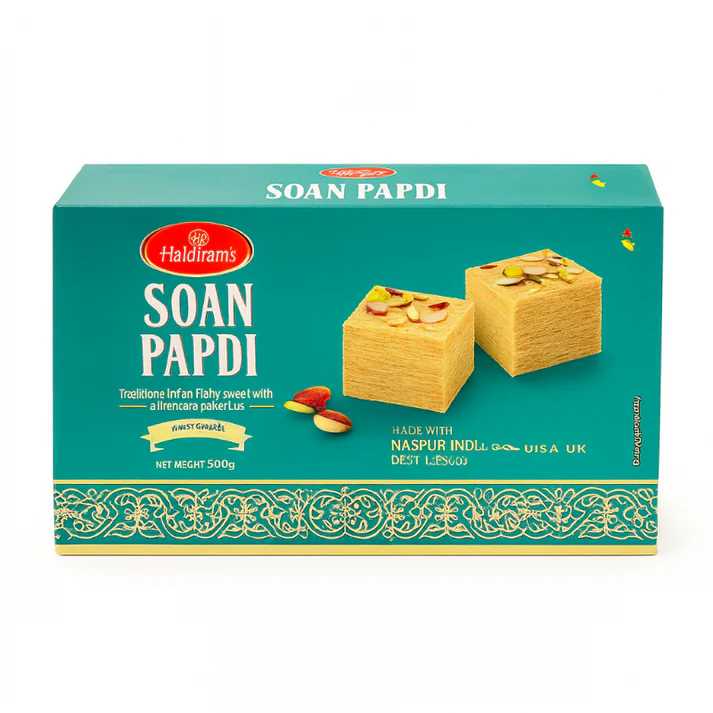 Soan Papdi to popularny indyjski przysmak, który słynie z delikatnej konsystencji i bogatego, orzechowego smaku. Wykonany z mieszanki mąki z ciecierzycy, cukru i ghee, ten rozpływający się w ustach przysmak jest ulubionym przysmakiem zarówno miejscowych, jak i turystów. Haldiram’s słynie z wysokiej jakości i autentycznych indyjskich słodyczy, a ich Soan Papdi nie jest wyjątkiem. Ten pyszny przysmak jest idealny do zaspokojenia ochoty na słodycze lub dzielenia się nim z przyjaciółmi i rodziną. Niezależnie od tego, czy szukasz smacznej przekąski do zjedzenia w podróży, czy wyjątkowego prezentu do przywiezienia z podróży, Haldiram’s Soan Papdi z pewnością zrobi wrażenie.