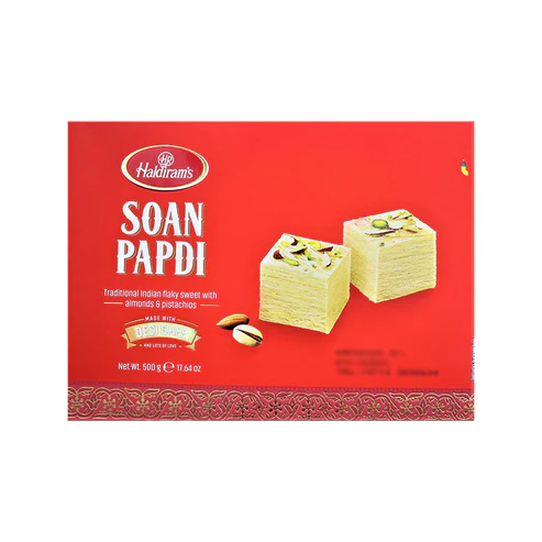Soan Papdi to popularny indyjski przysmak, który słynie z delikatnej konsystencji i bogatego, orzechowego smaku. Wykonany z mieszanki mąki z ciecierzycy, cukru i ghee, ten rozpływający się w ustach przysmak jest ulubionym przysmakiem zarówno miejscowych, jak i turystów. Haldiram’s słynie z wysokiej jakości i autentycznych indyjskich słodyczy, a ich Soan Papdi nie jest wyjątkiem. Ten pyszny przysmak jest idealny do zaspokojenia ochoty na słodycze lub dzielenia się nim z przyjaciółmi i rodziną. Niezależnie od tego, czy szukasz smacznej przekąski do zjedzenia w podróży, czy wyjątkowego prezentu do przywiezienia z podróży, Haldiram’s Soan Papdi z pewnością zrobi wrażenie.
