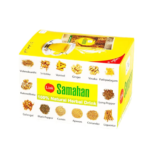 Natural Samahan to ajurwedyjski napój ziołowy stworzony na bazie starannie dobranej mieszanki tradycyjnych roślin leczniczych. Ten naturalny produkt pochodzi ze Sri Lanki i od lat cieszy się zaufaniem jako skuteczny środek wspomagający organizm w walce z przeziębieniem, osłabieniem i zmęczeniem.