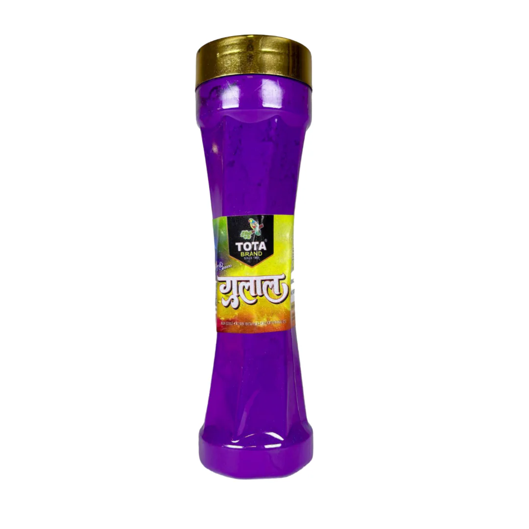 Naturalny ziołowy gulal Holi w kolorze fioletowym marki Tota. Wykonany z roślinnych składników, bezpieczny dla skóry, włosów i środowiska. Opakowanie 125 g.
